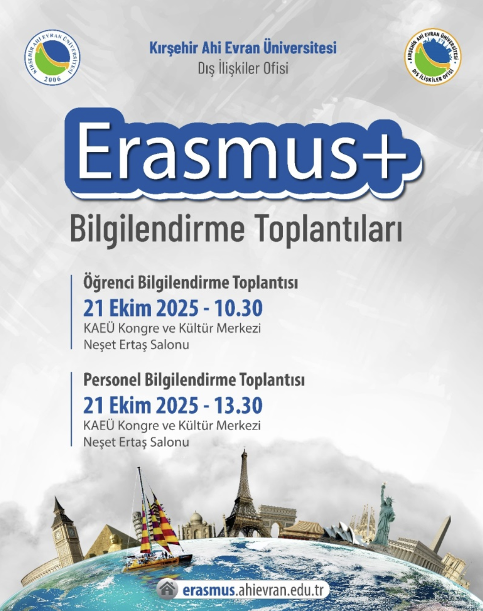 Üniversitemiz Erasmus ofisi tarafından 21 Ekim 2025 tarihinde Erasmus Bilgilendirme Toplantısı yapılacaktır.